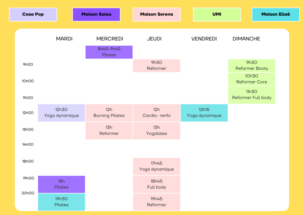 - Mercredi 12h Burning Pilates (à partir de mars)
