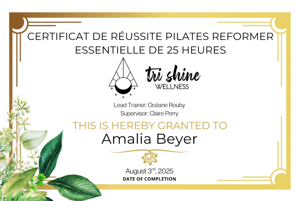 - Juillet 2025 : Pilates Reformer 25h